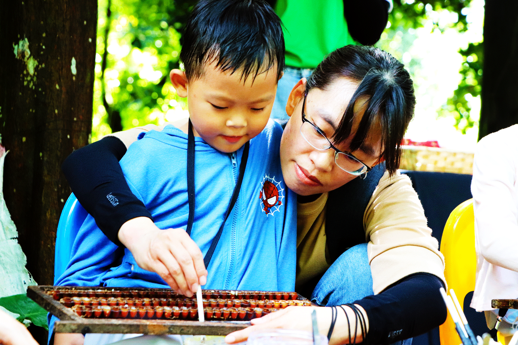 跟爸爸媽媽一起拜訪工蜂、雄蜂和蜂王